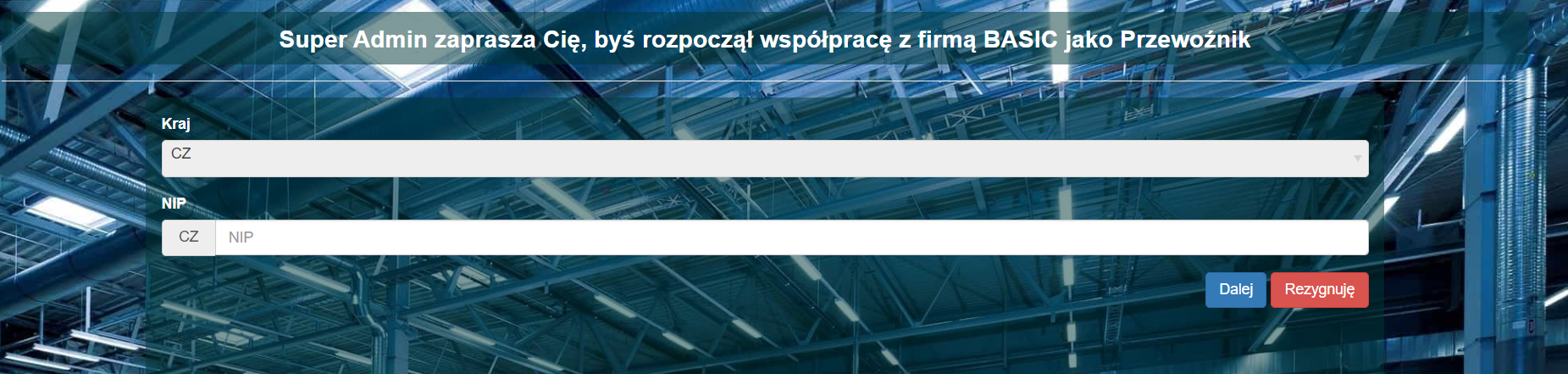 - NIP – wpisz numer NIP, wpisana wartość musi zgadzać się z numerem podanym przez osobę wysyłającą zaproszenie,