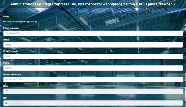 Poniżej przedstawiono podstawowy proces rejestracji firmy. Niektórzy Klienci wymagają od firm transportowych/spedycji przejścia rozszerzonego procesu rejestracji, aby upewnić się czy nie jest wymagane dodatkowe przejście weryfikacji firmy, po zarejestrowaniu należy zalogować się na swoje Konto Użytkownika i przejść do zakładki "Firma". Jeśli w zakładce "Firma" znajdują się sekcje dotyczące posiadanych Licencji i Ubezpieczeń oznacza to, że wymagana jest dodatkowa weryfikacja. W celu poznania procesu rozszerzonej rejestracji i weryfikacji firmy przejdź do tego artykułu -> Rozszerzony proces rejestracji.