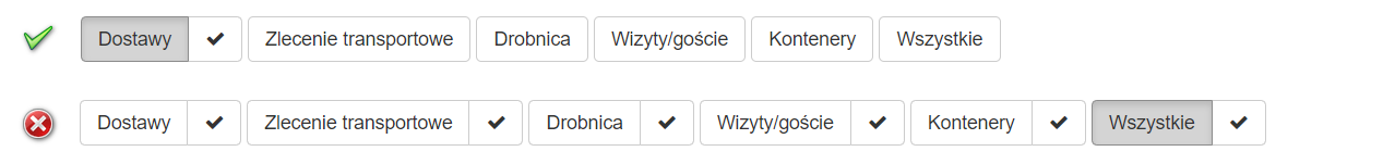 W zakładce Transporty w przypadku gdy uruchomiona jest jedna z dostępnych sekcji transportów, aplikacja umożliwi filtrowanie wartości w poszczególnych komunach: