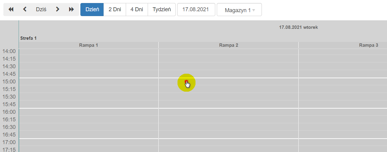 - Kliknij LPM (Lewym przyciskiem myszy) w wolne (jasnoszare) miejsce w Harmonogramie,