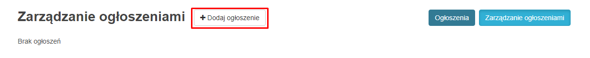 - Następnie kliknąć w przycisk "Dodaj ogłoszenie":