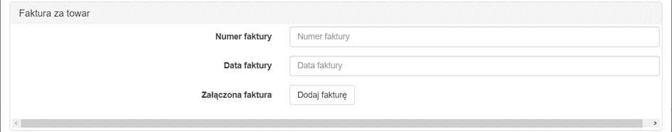 - Załączona faktura – miejsce na załączenie skanu faktury w formie PDF,