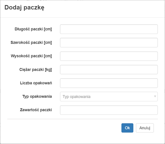 - Uzupełnij formularz tworzenia zlecenia kurierskiego: